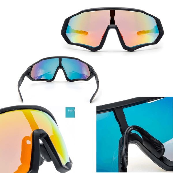 O kit vem também com uma lente fotocromática que escurece de acordo com a incidência de luz, uma lente noturna amarela que ajuda a visualizar melhor durante seus treinos a noite, uma lente espelhada e uma lente fosca. Além de uma case resistente a água para transportar seus óculos com muito mais segurança.